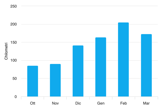 Nel grafico che si osserva in basso il focus è sul volume di corsa nel periodo dei sei mesi precedenti la Maratona. E’ intuibile come il mio approccio è stato di crescere nei km fino alla gara, nonostante non siano volumi esagerati ho avuto ancora una volta la dimostrazione tangibile di come periodizzare e avere gradualità, sia più importante di sedute da eroe o una sfida di massimizzazione (leggi qui per approfondire https://carlocavasinni.it/le-12-verita-dellallenamento-del-dr-seiler-per-lo-sviluppo-della-resistenza/).